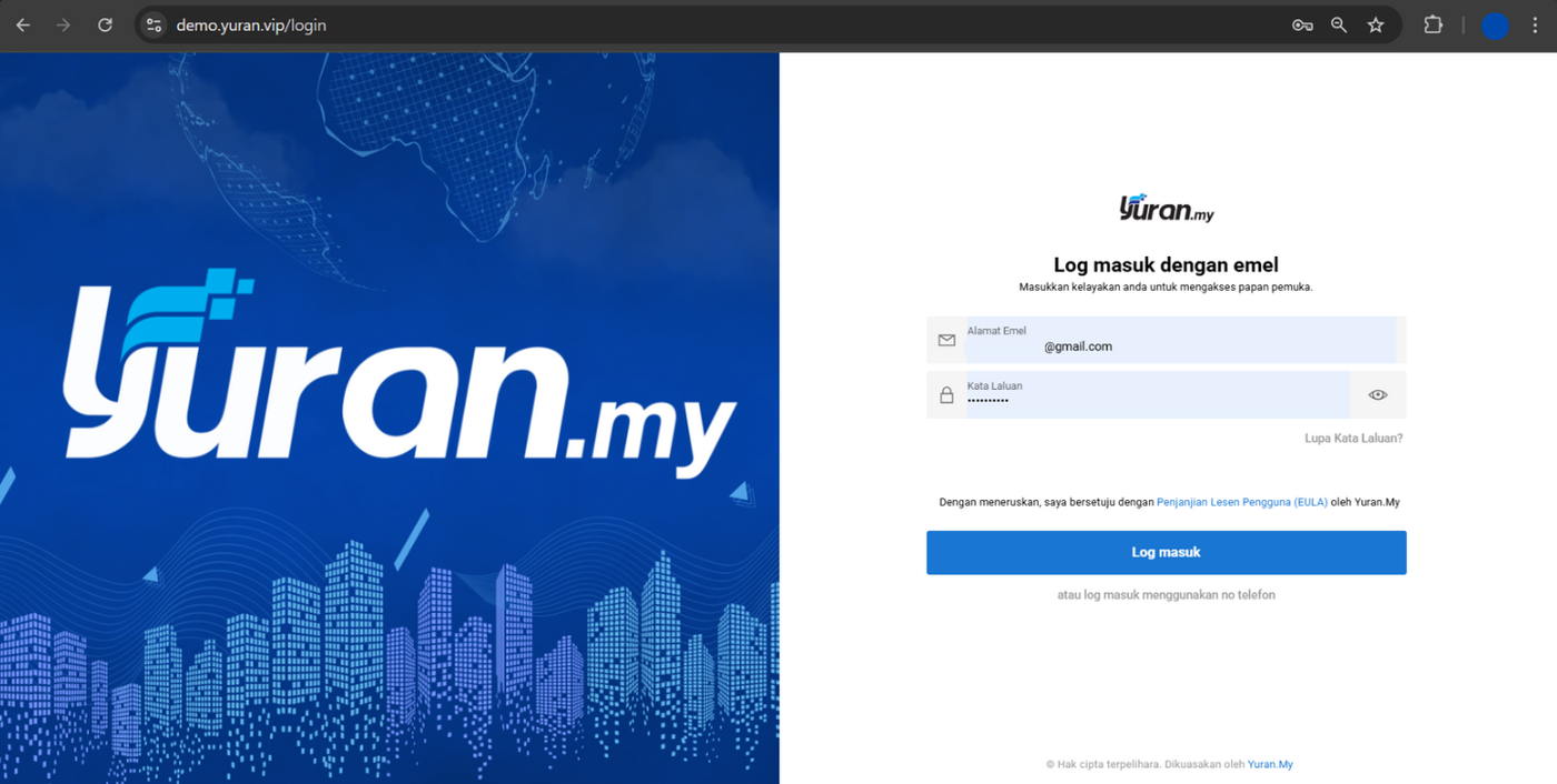 Langkah 1: Log masuk ke akaun anda menggunakan emel dan password (gunakan nombor telefon bagi penggunaan pertama kali)