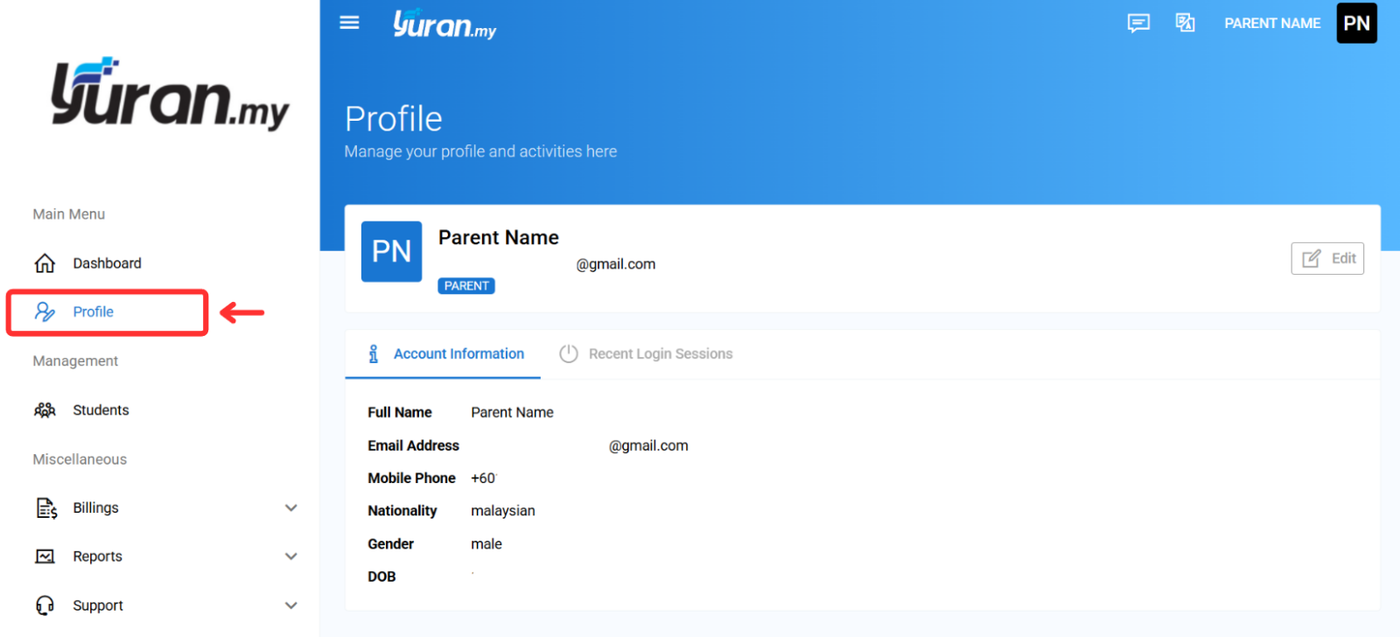 Langkah 2: Tekan menu "Profile" untuk lihat profil anda