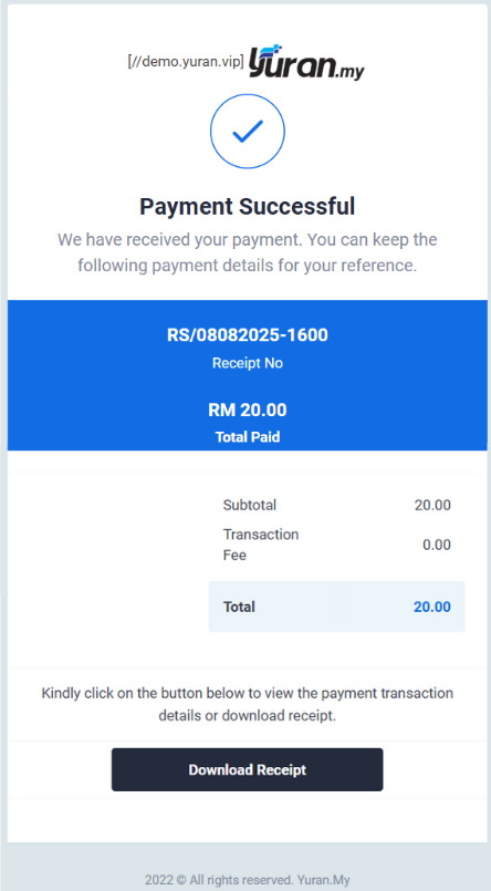 Tekan "Download Receipt" untuk simpan dalam fail anda